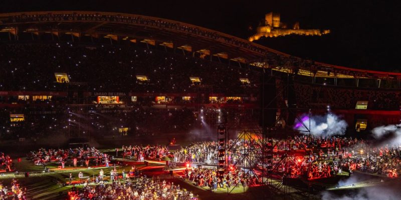 Rockin’1000 – A maior banda de Rock do Mundo fez a sua estreia em Portugal, no dia 14 de Setembro de 2024, no Estádio Municipal de Leiria e o espetáculo superou as expectativas de todos os presentes: a energia dos 1000 músicos em palco (neste caso no relvado) contagiou os milhares de fãs nas bancadas e o ambiente vivido foi de verdadeiro êxtase numa celebração da música, do convívio e da paixão pelo rock.