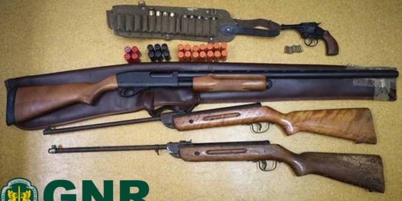 No decorrer das diligências foi dado cumprimento a uma busca domiciliária, onde foi possível apreender uma espingarda, uma arma de alarme, duas armas de pressão de ar, 24 cartuchos de calibre 12, 10 munições de salva de calibre 22 e nove cartuchos de bala de calibre 12.