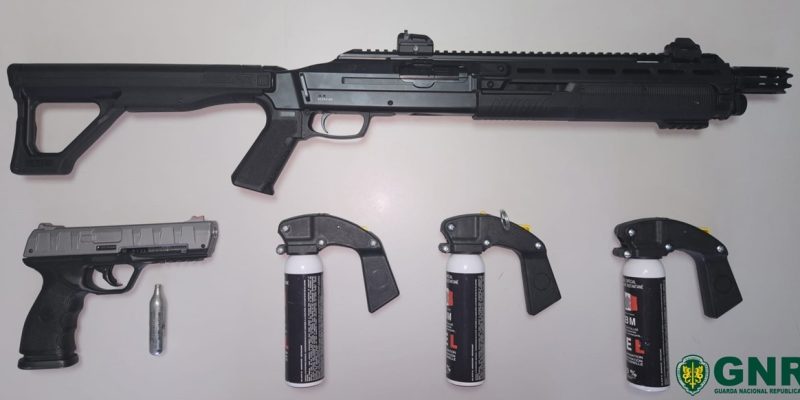 “No decorrer das diligências policiais foi possível confirmar a denúncia, culminando na identificação do suspeito e na apreensão de uma espingarda de airsoft; uma pistola de airsoft e três sprays de gás pimenta”, referem.