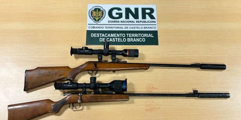 A intervenção resultou na detenção dos suspeitos e na apreensão de duas carabinas equipadas com mira térmica e silenciador (armas proibidas); e 13 cartuchos.