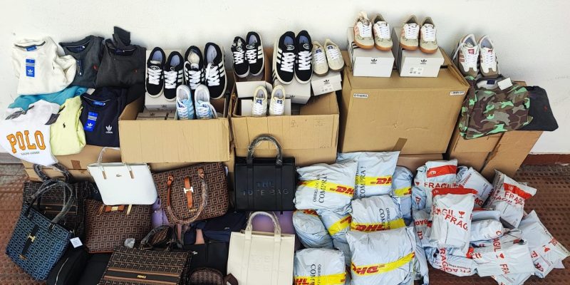 No seguimento das diligências, foram apreendidos mais de 300 artigos contrafeitos, entre vestuário, acessórios e outros bens de consumo, de várias marcas de prestígio internacional, que estavam expostos para venda ao público. O material apreendido tem um valor estimado superior a 6.900 euros, destacando-se 51 peças de vestuário, 104 pares de calçado, 66 malas de senhora e 79 embalagens de “encomendas não reclamadas”.