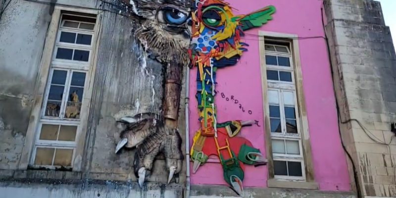 A cidade de Coimbra tem a partir de hoje uma nova instalação artística de Bordalo II, localizada na fachada norte do Colégio das Artes da Universidade, ao lado do Museu da Ciência.