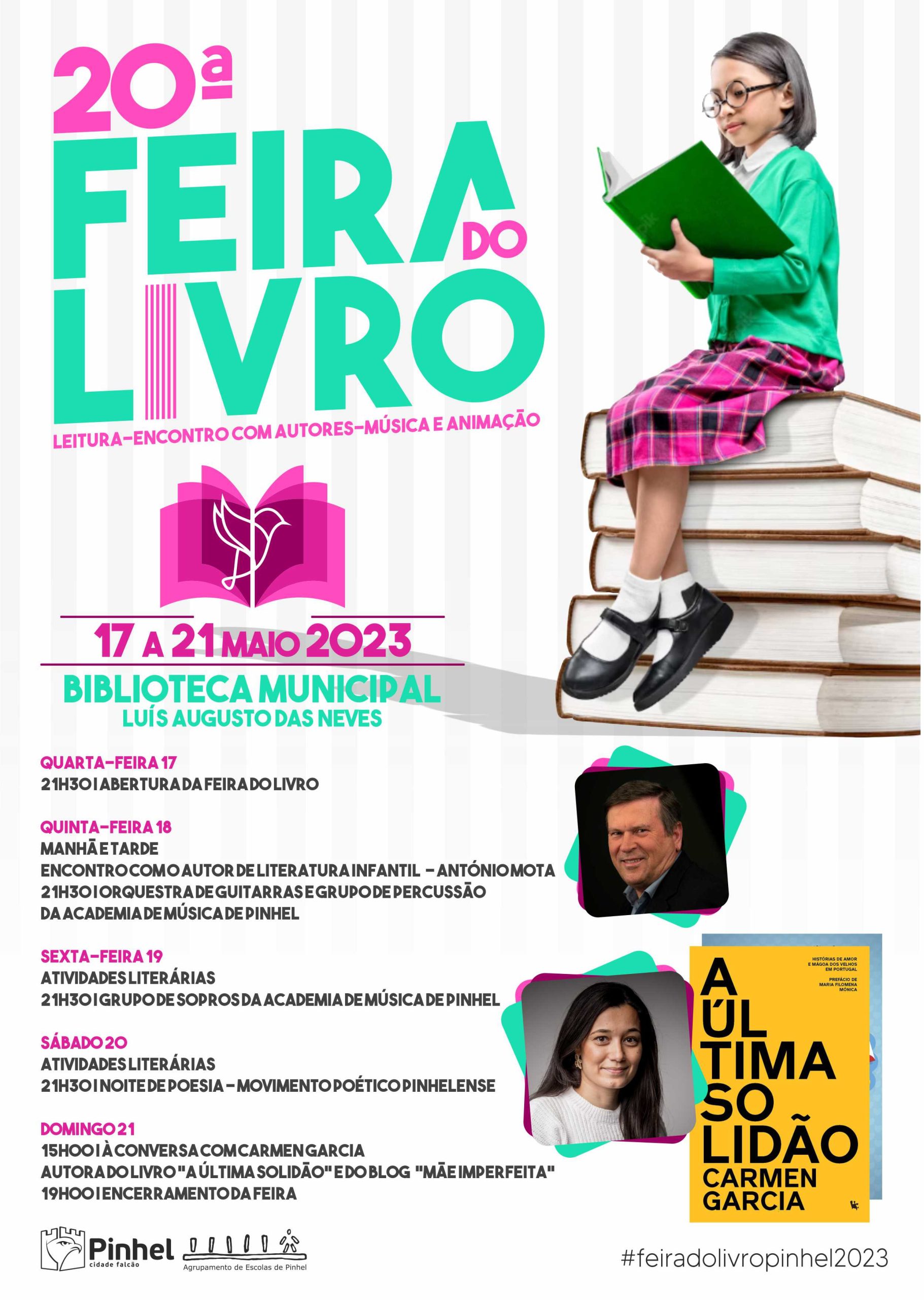 A 20ª Feira do Livro de Pinhel realiza-se do dia 17 a 21 de maio, nas instalações da Biblioteca Municipal Luís Augusto das Neves, com um programa que inclui música, poesia e também encontros e conversas com os autores António Mota, literatura infanto-juvenil e Carmen Garcia, autora do blog “mãe imperfeita” e do bestseller “A Última Solidão”.
