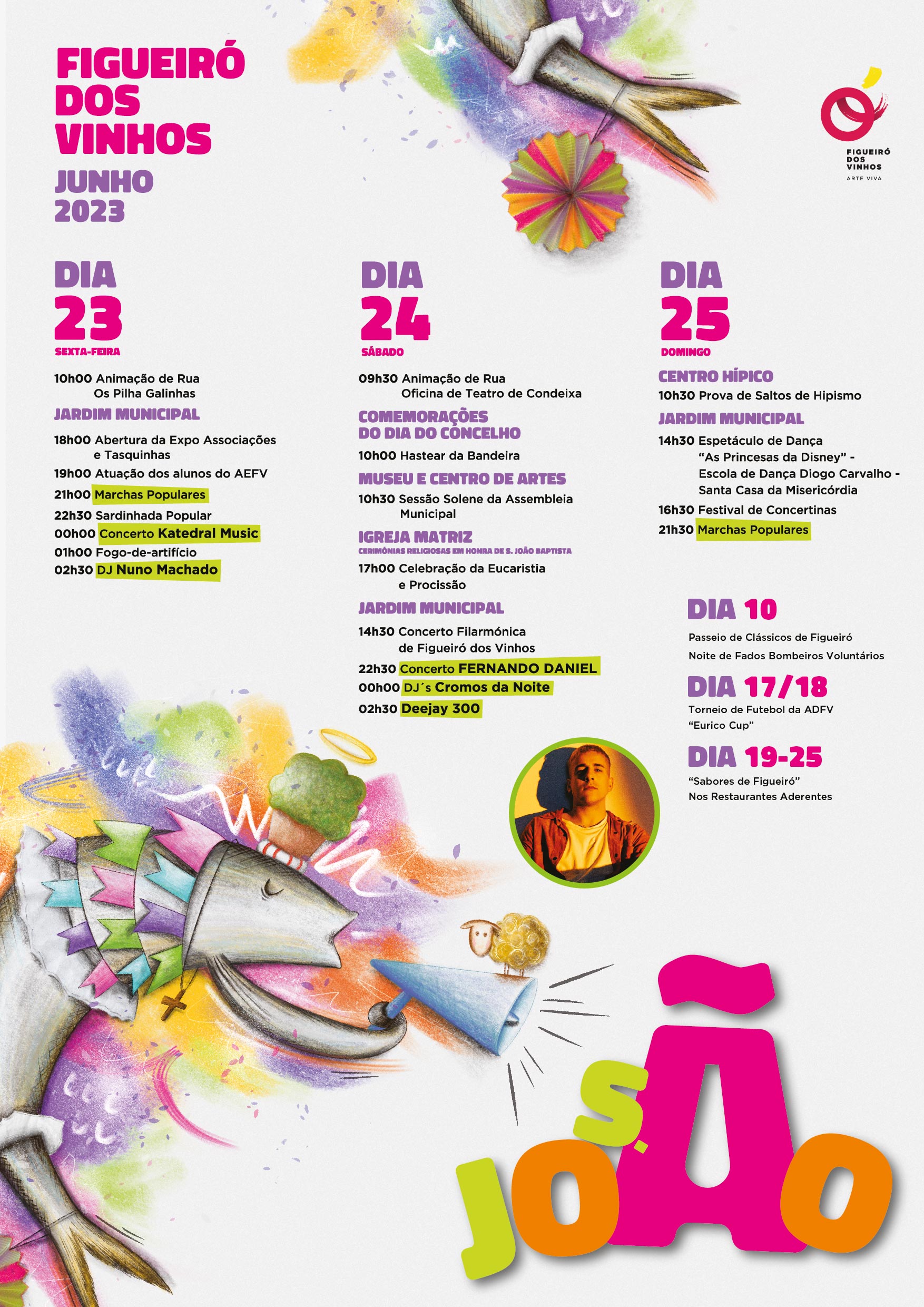 Este ano, o mês de São João será enriquecido, também, por um conjunto de eventos de diversas associações, desde o Passeio dos Clássicos de Figueiró, passando pela Noite de Fados dos Bombeiros Voluntários e pelo Torneio de Futebol da ADFV “Eurico Cup”, terminando com a iniciativa gastronómica do Município “Sabores de Figueiró”.