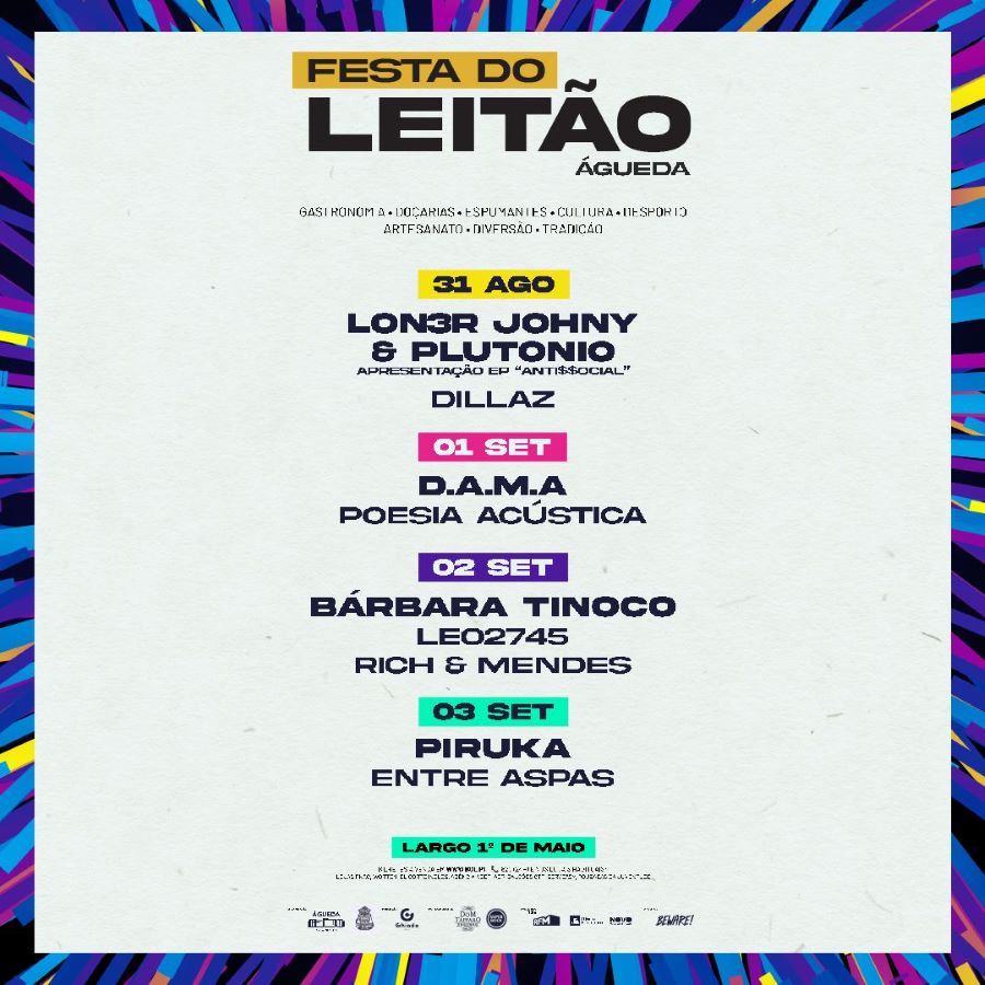 Destaques, no dia 31 de agosto para Lon3r Johny & Plutonio que vêm apresentar o EP ” Anti$$ocial” e Dillaz, um dos artistas mais conceituados no contexto do Hip-Hop português, com uma identidade muito bem definida.