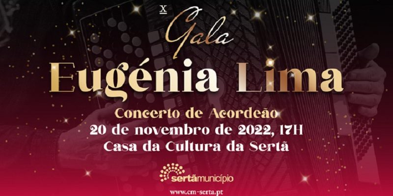A Gala Eugénia Lima está de regresso à Casa da Cultura da Sertã, no dia 20 de novembro, às 17:00. Trata-se da décima edição deste espetáculo de acordeão, promovido pelo Município da Sertã, com o objetivo de homenagear a saudosa acordeonista Eugénia Lima e promover o acordeão, instrumento típico da Música Popular Portuguesa. A décima edição marca o regresso desta iniciativa, após o interregno motivado pela pandemia.