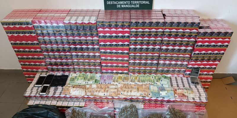 “Quatro mandados de busca domiciliária, dois em veículos automóveis e um em anexo agrícola, culminando na apreensão de diverso material como 656 doses de canábis; 218 doses de haxixe; 92.920 cigarros que se destinavam à introdução irregular no consumo; 14.030 euros em numerário; e cinco telemóveis”, descreve.