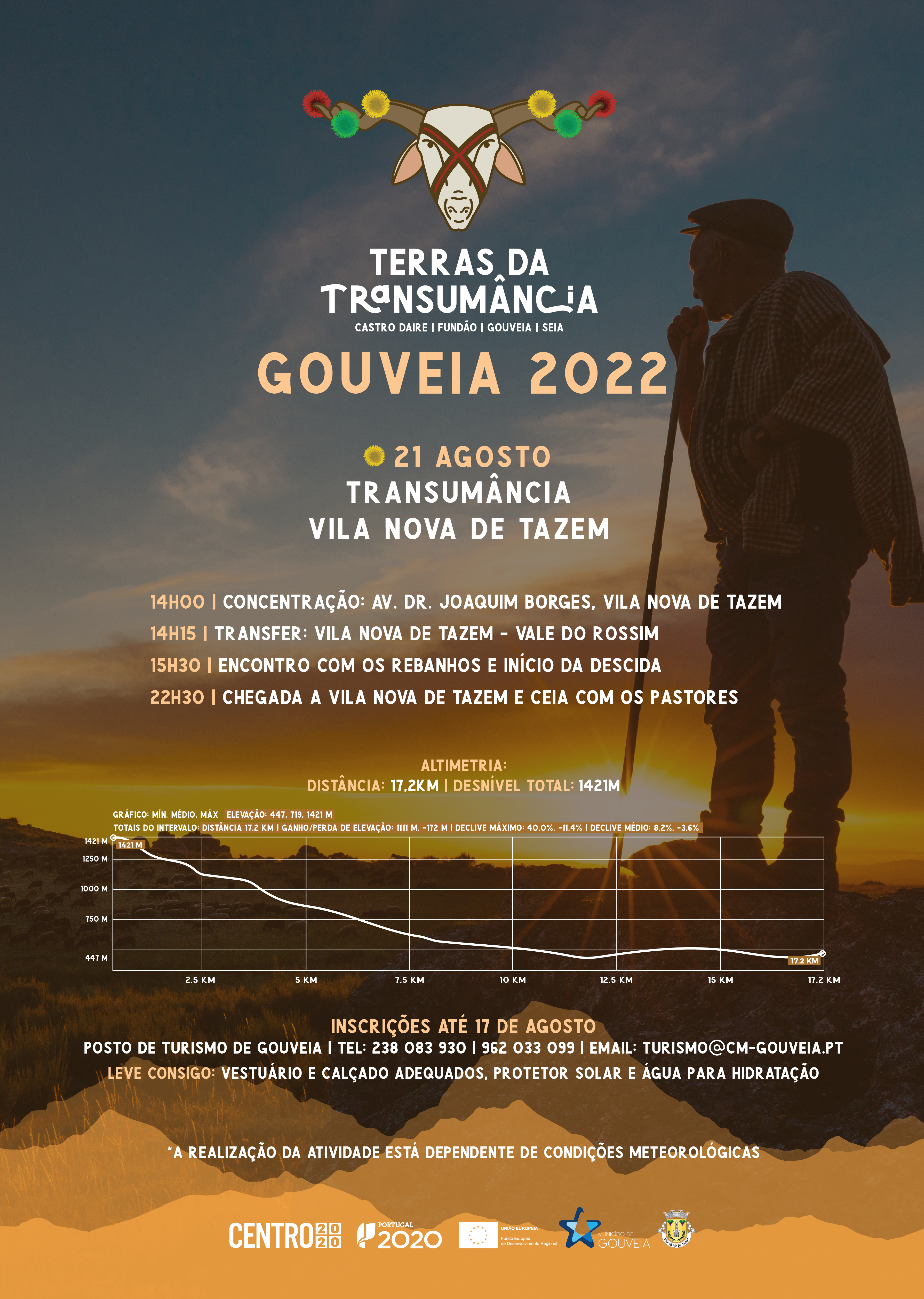 As inscrições poderão ser feitas, de forma presencial no Posto de Turismo de Gouveia, sito em Jardim da Ribeira; alternativamente através do contacto de email: turismo@cm-gouveia.pt; ou dos contatos de telefone 238 083 930; ou de telemóvel: 962 033 099.