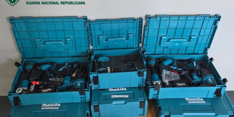 Entre o material apreendido encontravam-se cinco mini rebarbadoras, onze mini aparafusadoras, quatro máquinas de furar, uma rebarbadora, quatro chaves de roquete, duas baterias e um carregador de baterias.