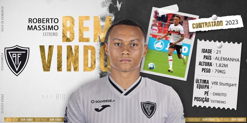 O futebolista internacional sub-21 alemão Roberto Massimo é reforço do Académico de Viseu para a temporada 2022/23, confirmou hoje a SAD do clube beirão que joga na II Liga de futebol.