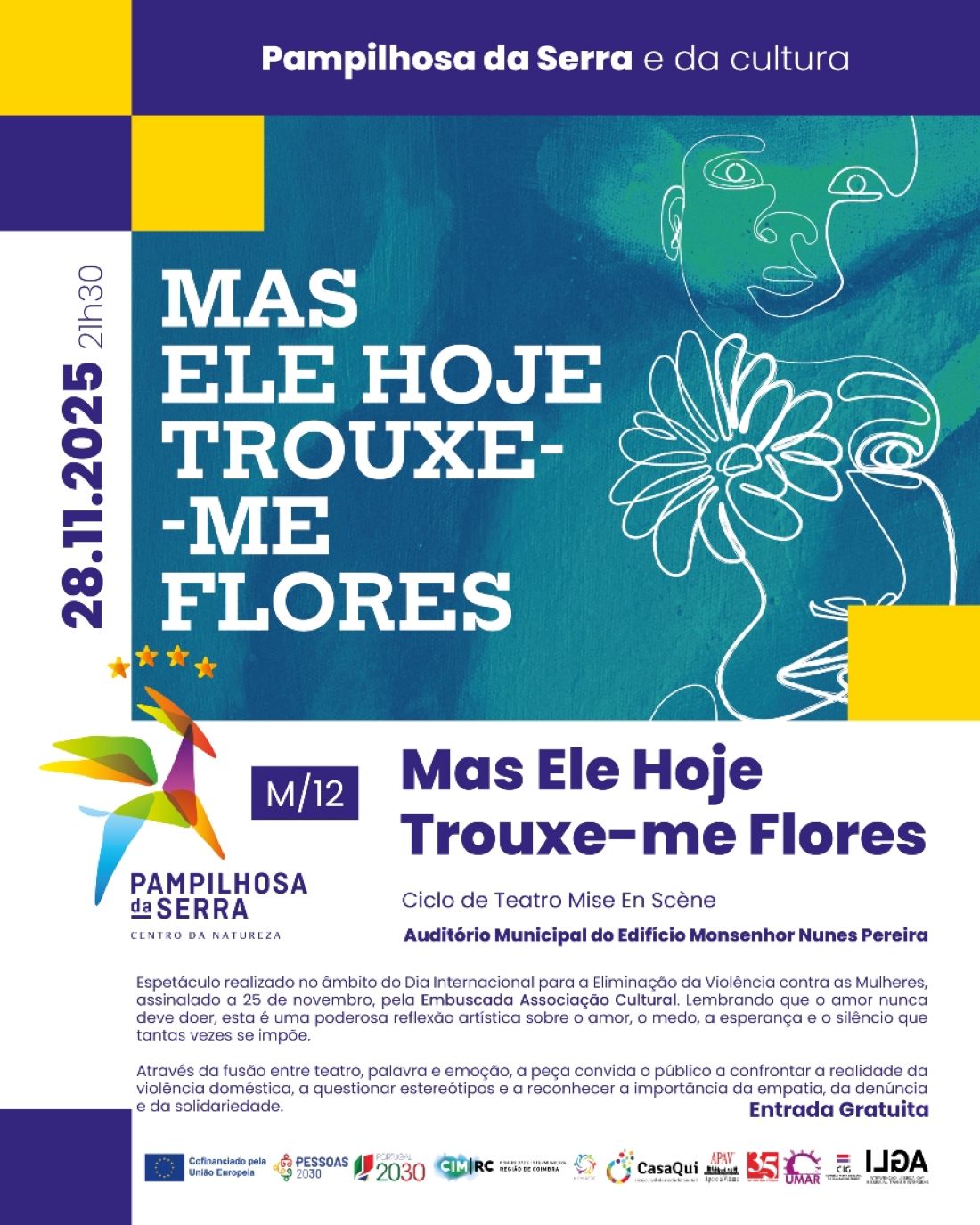 Não é apenas teatro: é um grito contra o silêncio. Na próxima sexta-feira, 28 de novembro, às 21:30, o Auditório Municipal recebe a peça “Mas Ele Hoje Trouxe-me Flores”, uma criação intensa e profundamente humana da Emboscada – Associação Cultural, integrada no ciclo de teatro Mise En Scène, promovido pelo município.