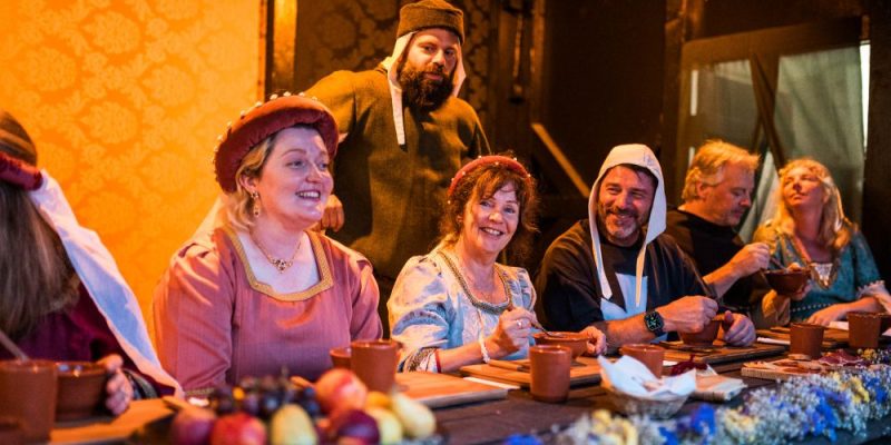 À mesa, os comensais saboreiam iguarias inspiradas na tradição medieval, enquanto danças, cantares e encenações transportam todos para os tempos da corte. A experiência inclui ainda o aluguer de trajes, entrada no mercado e acesso a zonas reservadas ao Cerco d’El-Rey.