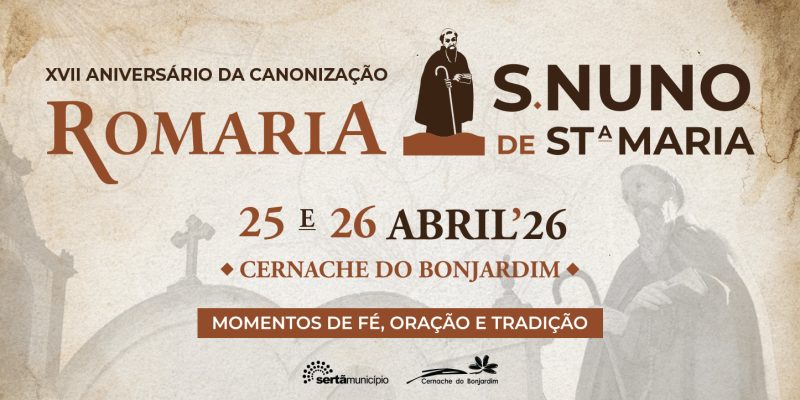 A vila de Cernache do Bonjardim prepara-se para celebrar o 17º aniversário da Canonização de São Nuno de Santa Maria. Este ano, a celebração será feita de forma mais contida, homenageando o Santo Condestável com momentos de fé, oração e tradição nos dias 25 e 26 de abril.