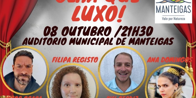 O Auditório Municipal de Manteigas recebe, no dia 08 de outubro, pelas 21:30, o espetáculo “Olha que luxo!”.