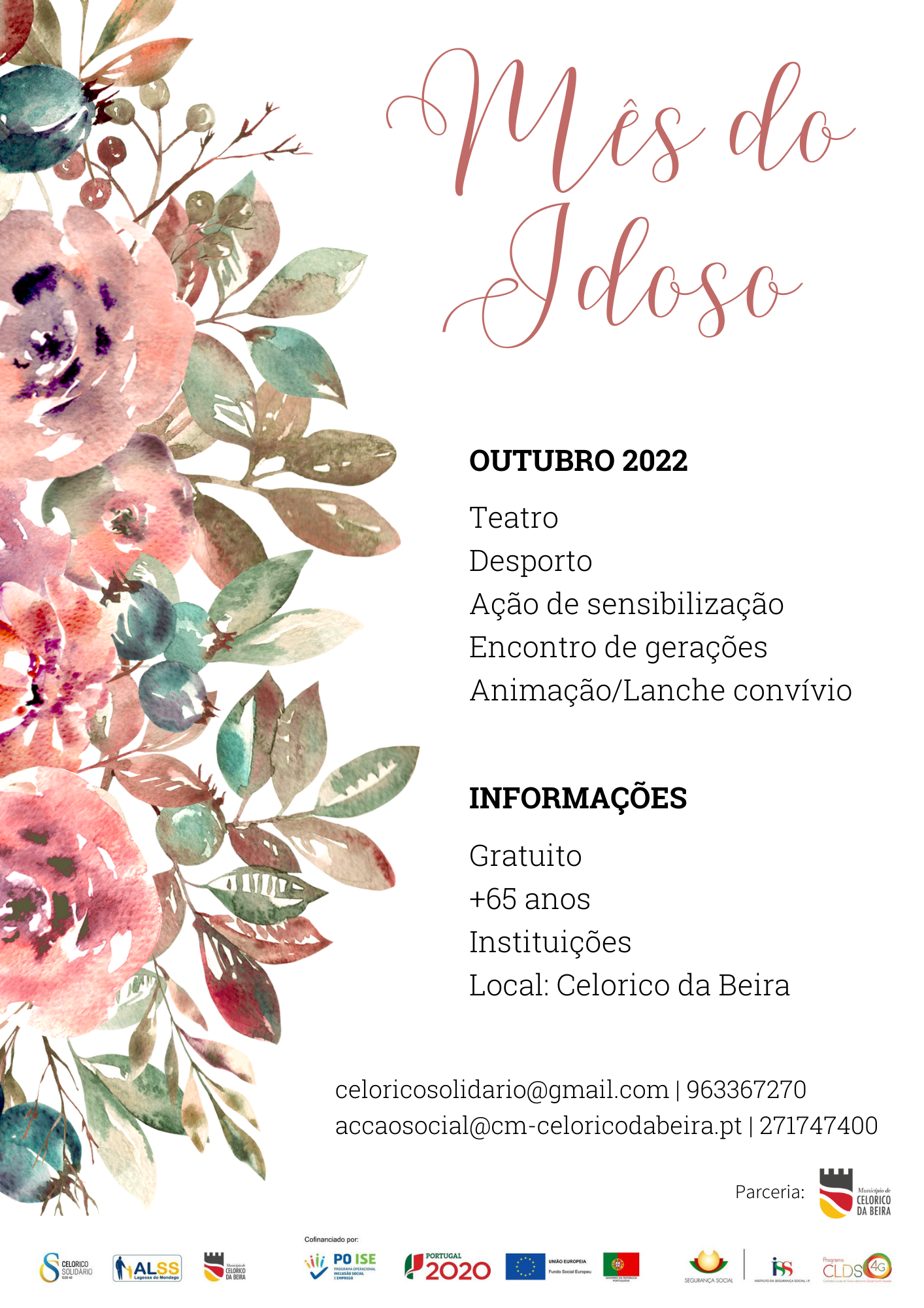 A Rede Social do Município de Celorico da Beira e o CLDS 4G Celorico Solidário promovem em outubro o Mês do Idoso, no âmbito das efemérides, Dia Internacional do Idosos (1) e o Dia Mundial da Terceira Idade (28), com atividades semanais dirigidas à população sénior deste território.