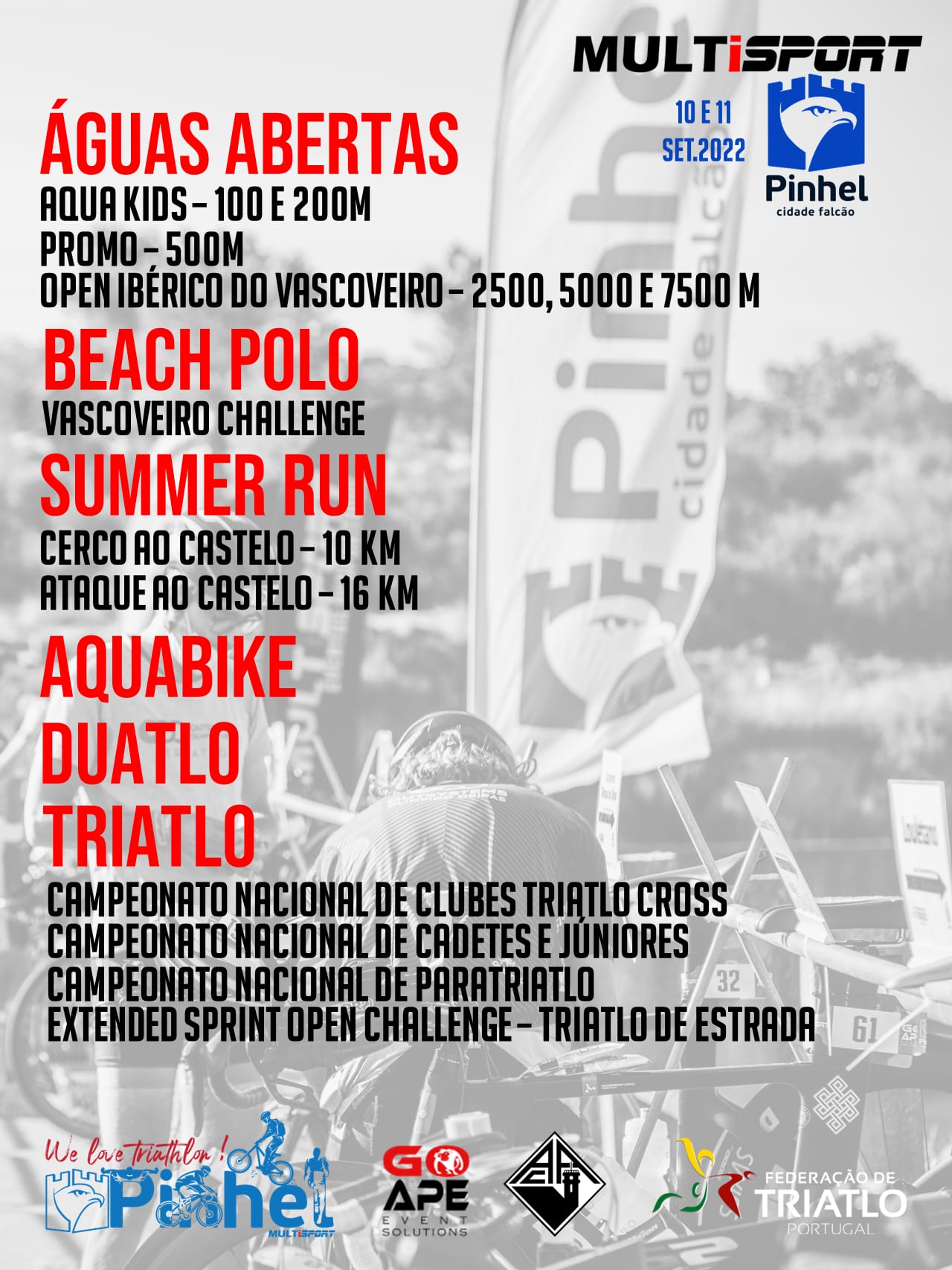 Até dia 1 de setembro, estão abertas as inscrições para o Aquabike, Duatlo e Triatlo dos Campeonatos Nacionais de Triatlo pontuáveis para Clubes Triatlo Cross, Cadetes e Juniores, Paratriatlo e também para o Extended Sprint Open Challenge – Triatlo de Estrada, a ter lugar nos dias 10 e 11 de setembro, em Pinhel.