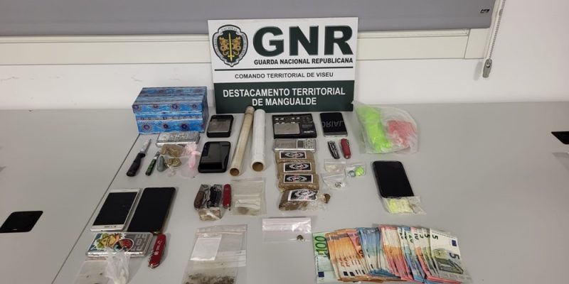 Foram ainda apreendidas “uma dose de heroína; dois gramas de anfetaminas; 0,4 gramas de ketamina; 2.205 euros em numerário; balanças de precisão; cinco telemóveis e diverso material de embalamento e doseamento”.
