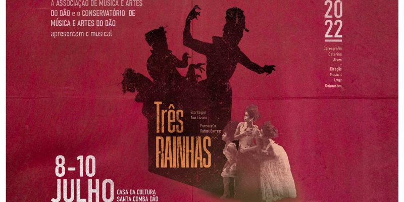 A Casa da Cultura de Santa Comba Dão recebe de 08 a 10 de julho recebe “Três Rainhas – O Musical”, uma peça que “promete grandes emoções, cenários e guarda-roupa da época vitoriana”.