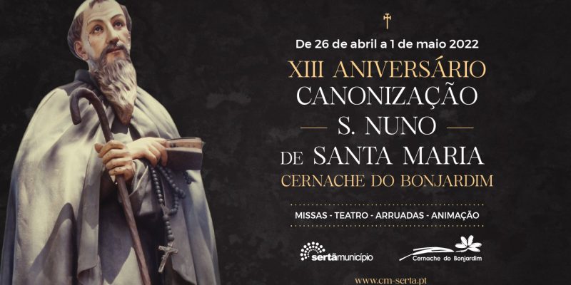 O 13.º aniversário da canonização de S. Nuno de Santa Maria é o mote para um programa comemorativo, que decorre na União de Freguesias de Cernache do Bonjardim, Nesperal e Palhais, entre os dias 26 de abril e 1 de maio. A organização está a cargo do Município da Sertã, em conjunto com a Junta de Freguesia local.