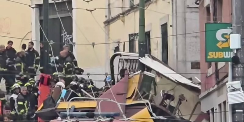 O elevador da Glória descarrilou e foi contra um prédio, tendo o elevador ficado bastante danificado.